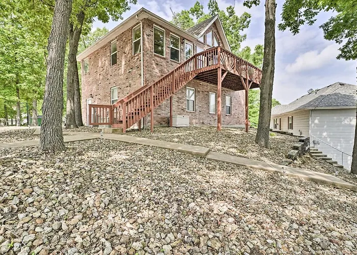 Situada a 10 minutos de carro do Lago de Ozarks, Waterfront Sunrise Beach Home With Dock And Grill convida os hóspedes a relaxar num pátio.
